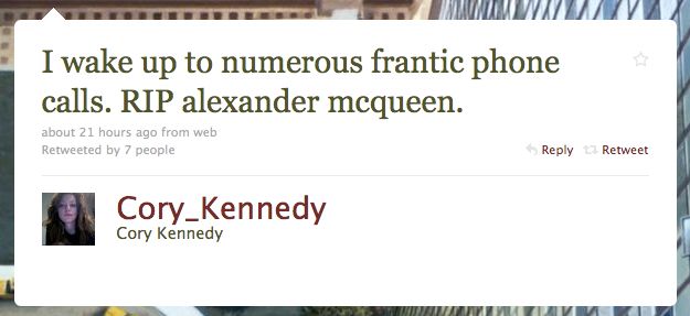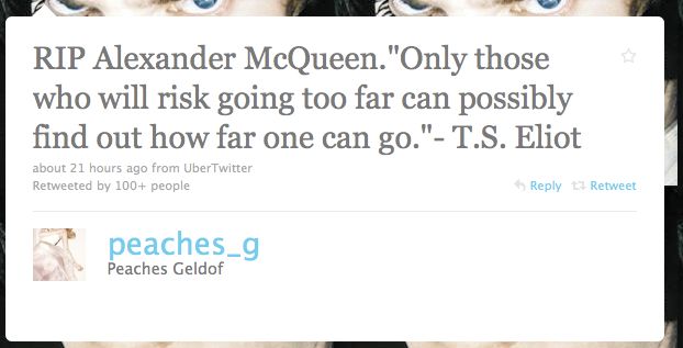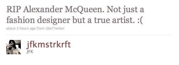 Did you see any alt celebs mourning/namedropping/reflecting upon Alexander McQueen?