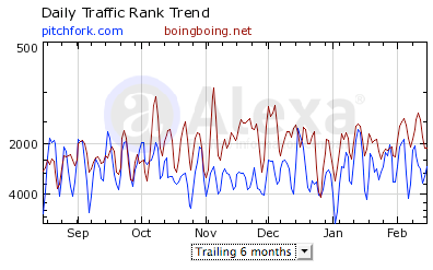 Graph showing the massiveness of boingboing. So many readers who are probably only ‘casually’ into music, purchasing it from the iTunes music store.